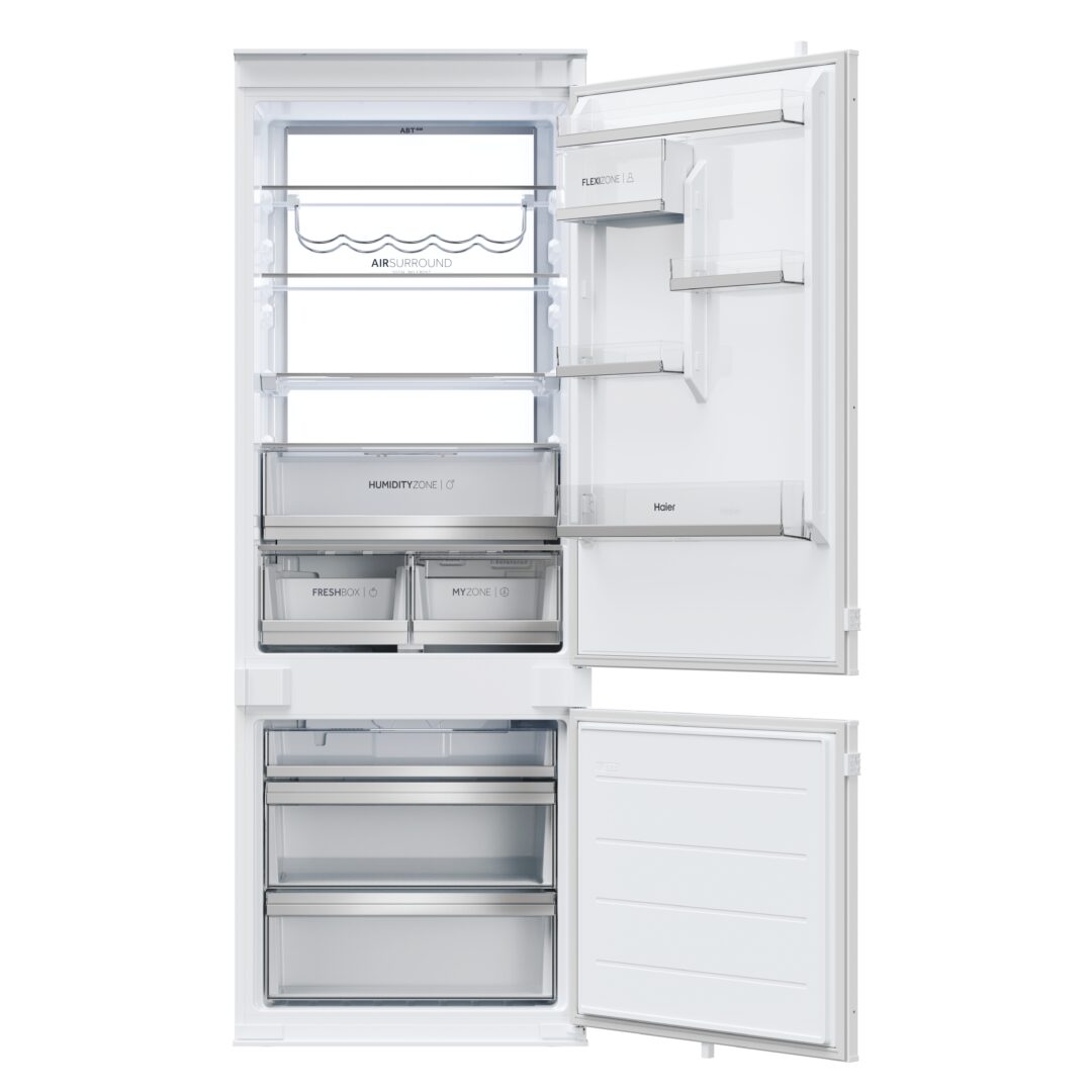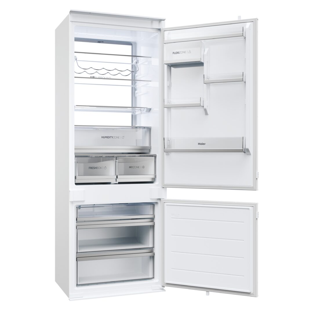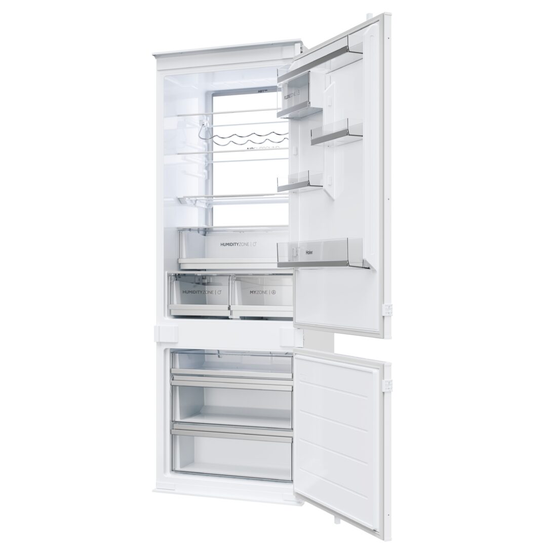 Haier HBW7719C. Capacidad neta total: 400 L. Bisagra para puerta: Derecho. Clase climática: SN-T, Nivel de ruido: 32 dB. Frigorífico, capacidad neta: 285 L, Antiescarcha (nevera), Luz interior de la nevera, Frigorífico, número de compartimentos: 4. Congelador, capacidad neta: 115 L, Capacidad de congelación: 8 kg/24h, Antiescarcha (congelador). Compartimiento de zona fresca. Clase de eficiencia de energía: C, Consumo de energía anual: 150 kWh. Color del producto: Blanco