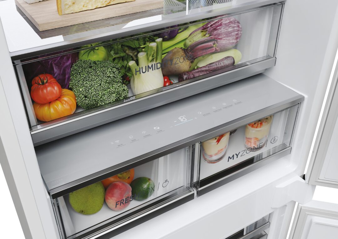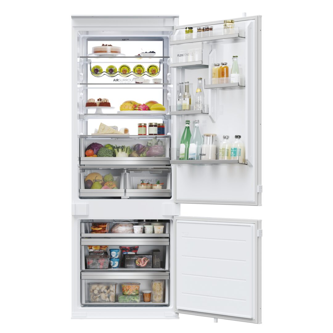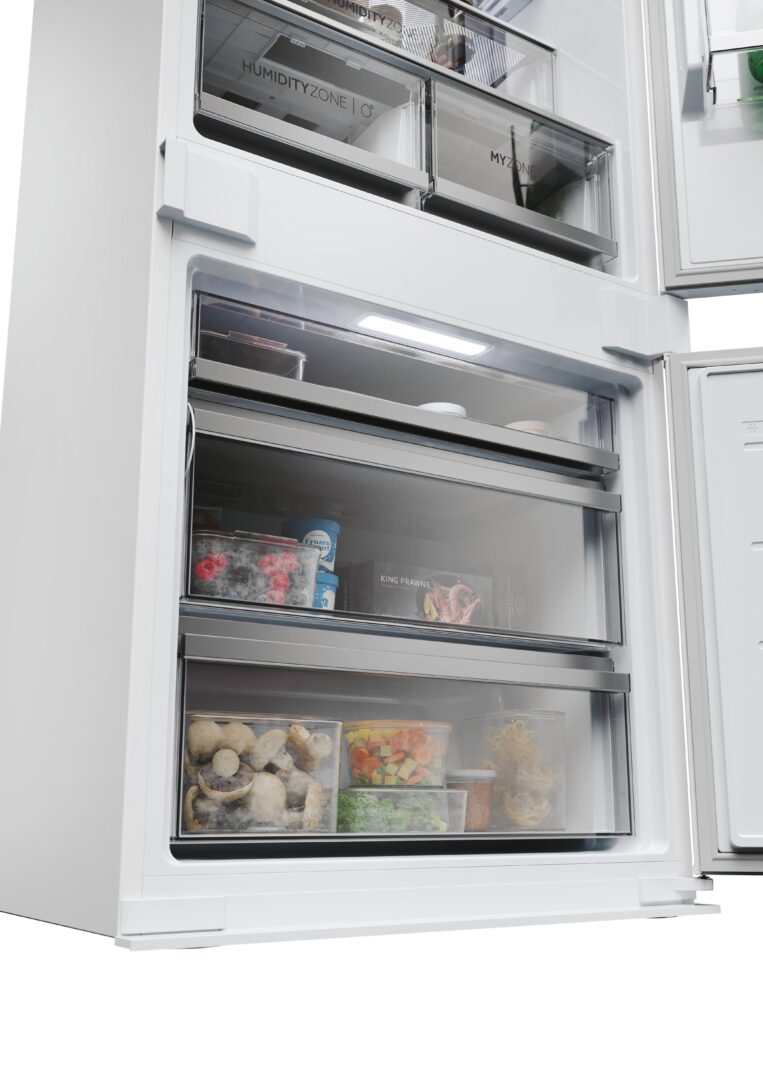 Haier HBW7719C. Capacidad neta total: 400 L. Bisagra para puerta: Derecho. Clase climática: SN-T, Nivel de ruido: 32 dB. Frigorífico, capacidad neta: 285 L, Antiescarcha (nevera), Luz interior de la nevera, Frigorífico, número de compartimentos: 4. Congelador, capacidad neta: 115 L, Capacidad de congelación: 8 kg/24h, Antiescarcha (congelador). Compartimiento de zona fresca. Clase de eficiencia de energía: C, Consumo de energía anual: 150 kWh. Color del producto: Blanco