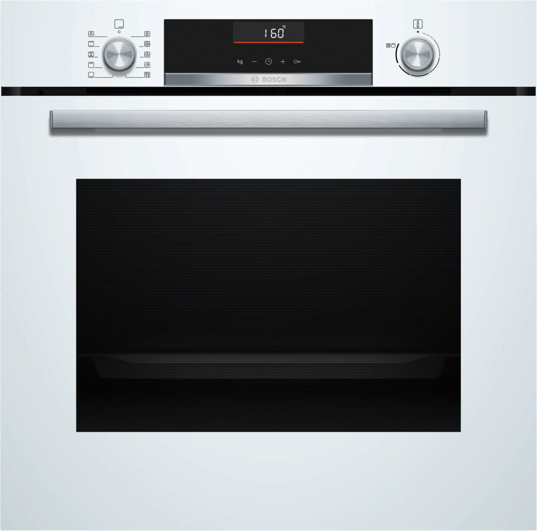 Bosch Serie 6 HBG536EW4. Tamaño del horno: Medio, Tipo de horno: Horno eléctrico, Total capacidad interior, horno (s): 71 L. Tipo de instalación: Integrado, Color del producto: Blanco, Tipo de control: Giratorio, Tocar. Clase de eficiencia de energía: A+, Consumo de energía (convencional): 0,94 kWh, Consumo de energía (convección forzada): 0,69 kWh. Tipo de lámpara: Halógeno. Ancho de compartimiento de instalación: 56,8 cm, Profundidad del compartimiento de instalación: 55 cm, Altura del compartimiento de instalación: 59,5 cm
