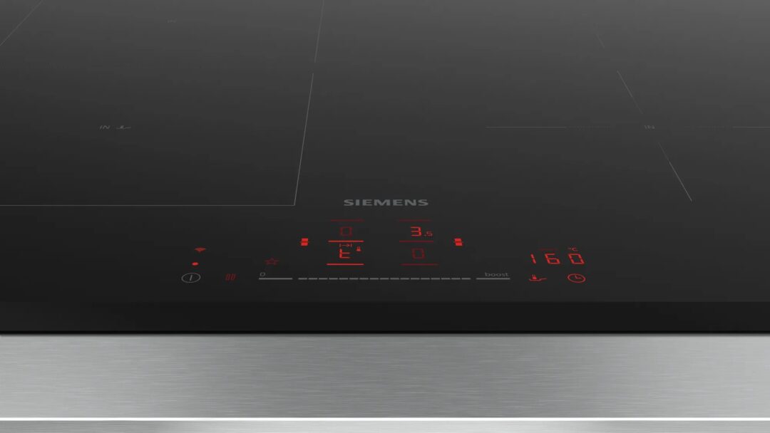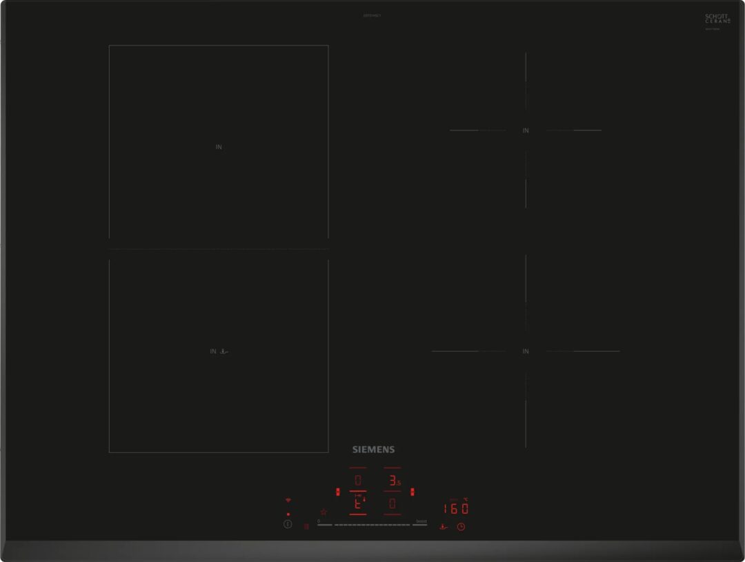 Siemens iQ500 ED751HSC1E. Color del producto: Negro, Tipo de instalación: Integrado, Anchura de los quemadores: 70 cm. Tipo de control: Tocar, Control de posición: Frente, Tipo de temporizador: Digital. Carga conectada (eléctrica): 6900 W, Voltaje de entrada AC: 220 – 240 V, Frecuencia de entrada AC: 50 – 60 Hz. Ancho: 710 mm, Profundidad: 522 mm, Altura: 51 mm. Ancho del paquete: 953 mm, Profundidad del paquete: 608 mm, Altura del paquete: 126 mm