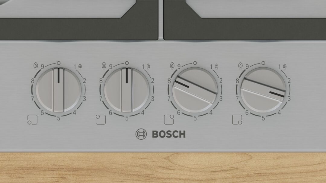 Bosch Serie 6 PCP6A5I90. Color del producto: Acero inoxidable, Tipo de instalación: Integrado, Anchura de los quemadores: 60 cm. Tipo de control: Giratorio, Control de posición: Frente, Tipo de encendido electrónico: Encendido con una mano. Carga conectada (gas): 7500 W, Voltaje de entrada AC: 220-240 V, Frecuencia de entrada AC: 50/60 Hz. Tecnologías Bosch (cocción): FlameSelect®. Ancho: 582 mm, Profundidad: 520 mm, Altura: 51 mm